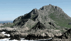 NC’s Josiah Clarke kicked off with two slides: A shot of the nearly bare Southeast Farallons, and a “bunch of logs” (similar, not identical, to the pictures here). “I’m definitely not a hater of trees…” he said, noting that the pictures reflected his “background with trees”.