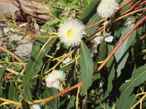 2. Eucalyptus flowers have nectar which is like most nectar–a bit of dissolved sugar, mostly water. It is a stretch to call it sticky; it’s no more sticky than other flowers; it is flatly false to call it “gummy.”