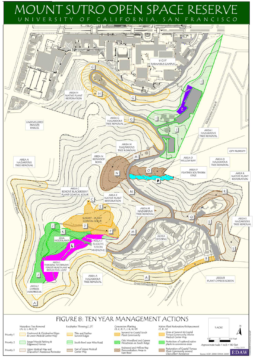 Q: Mount Sutro Forest is one of the last dense forests left in the city, so we have concerns about any thinning, even in demonstration project area. The “Area L” project on the map will impact the whole forest in that area. Area P runs along a seasonal creek that has a different ecology. We would like to see real ecological study of the forest