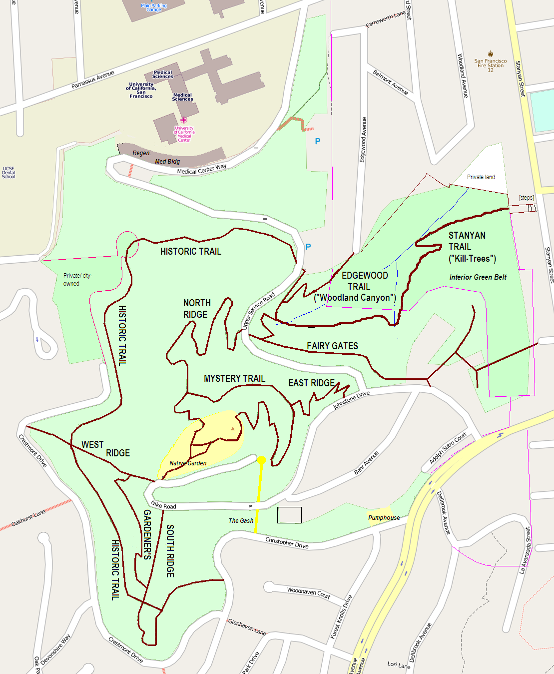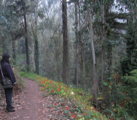Sunday evening, we were in the forest. We started at Stanyan x 17th, going up the (Stanyan) “Kill-trees Trail.”