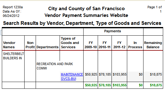 Shelterbelt Builders, the contractor the Natural Areas uses for pesticide application, earned more fees from Rec & Park as pesticide applications increased: