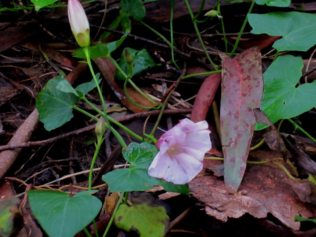 The forest looked lush, almost a jungle. Though the blackberry bushes have been trimmed, it wasn’t the devastation we’ve seen before. Perhaps the Sutro Stewards are being respectful of the bird nesting season, which runs through August. A few delicate convolvulus flowers opened trumpets along the path.