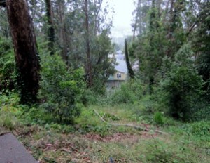 The Gash – a bare patch in the forest between the Nike Rd and Christopher St, left by the SF PUC when it laid some pipe is visible from the Nursery. It’s finally been allowed to heal. (Earlier, someone kept pulling down anything that tried to grow there, to the distress of neighbors below.) The house on Christopher is still visible through the vegetation, but is a lot better than the barren strip that existed before.
