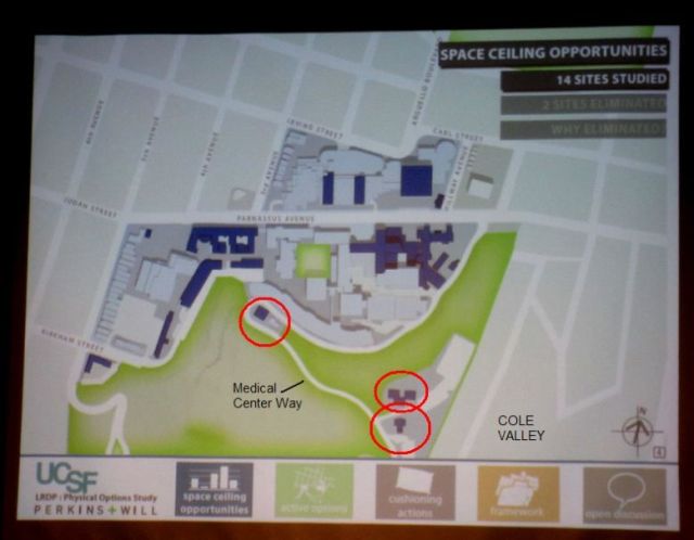 We attended UCSF’s Long Range Development Plan meeting this evening. It’s due 2014, and gives UCSF a road-map through 2035. Most of the discussion focused on how UCSF should get back under their space ceiling, a limit they had decided on back in 1976 but have always exceeded since then. This impacts neighbors, particularly those in the Inner Sunset at 5th and Kirkham.