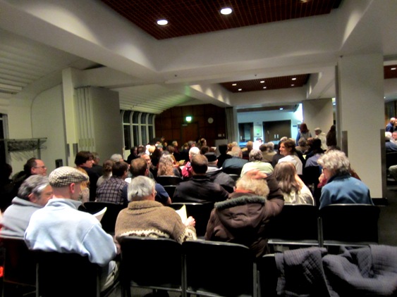 Around 250 people came to the meeting, and 47 55 people actually spoke. Speakers were limited to 2 minutes each, but even so, the hearing ran from 7 p.m. to 9.15 p.m. Sentiment ran more than 2:1 against UCSF’s tree-felling plan. The crowd clapped and cheered in support of the points the speakers made. Though UCSF held this public hearing as a legality, it clearly became a platform for people to express their opinions about the actual project. [Updated to correct number of people speaking. Over 70% favored preserving the forest.]