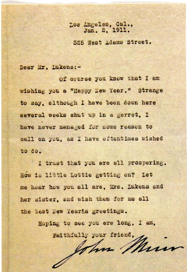 This 1911 New Year’s greeting from John Muir is a reflection of his fondness for eucalyptus. He planted eucalypts around his home in Martinez, California.