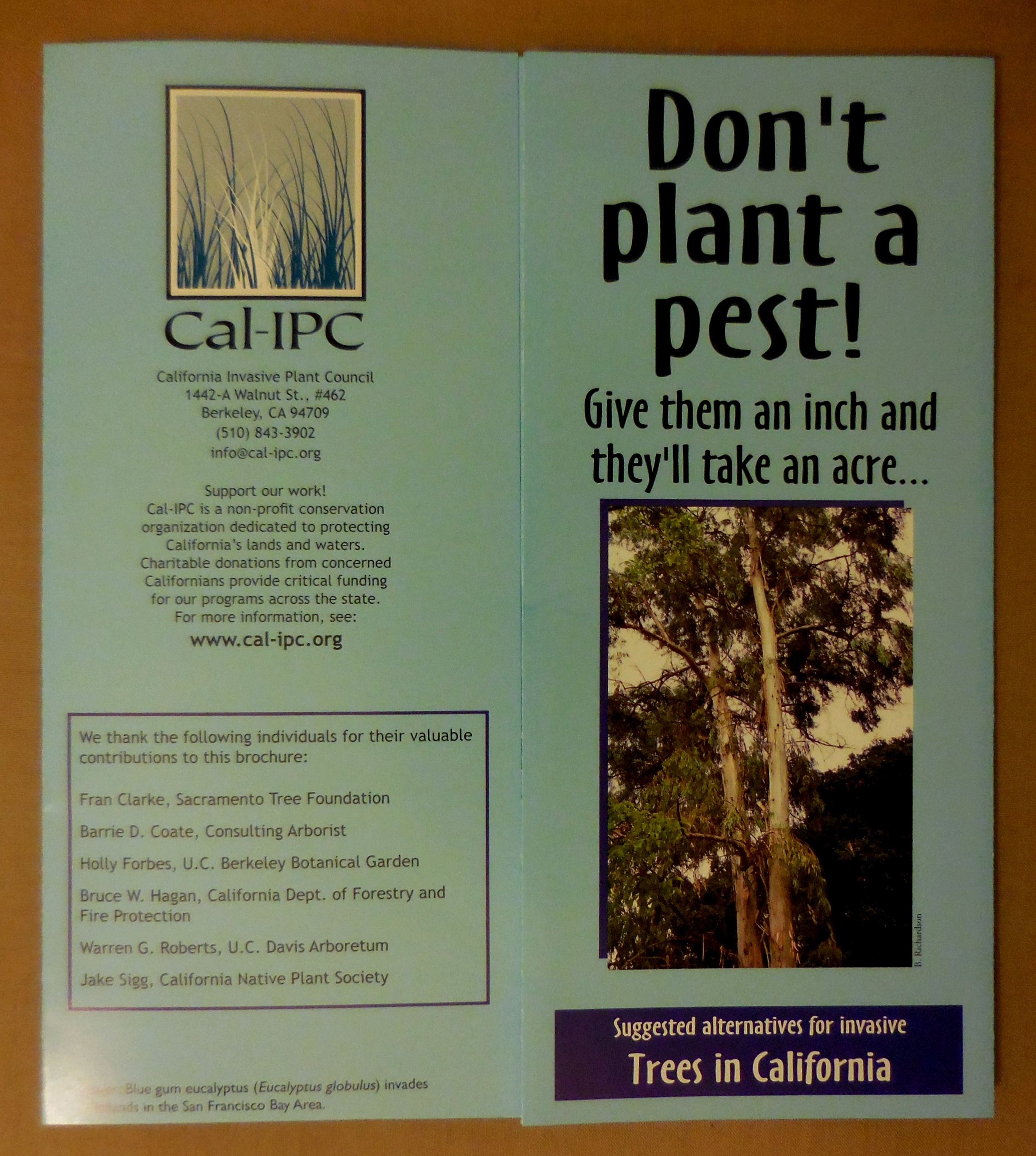 (The pamphlet’s title ‘Don’t Plant a Pest’ is ironic, because blue gum eucalyptus is no longer sold by nurseries, nor is it being planted in California – and hasn’t in years.)