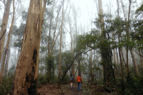 It was the perfect afternoon for a walk in the company of a friend’s friend who wanted to see Sutro forest. It rained the previous day, but now the weather offered no more than an occasional sprinkle. The tops of the trees reached into the clouds, barely distinguishable from fog.