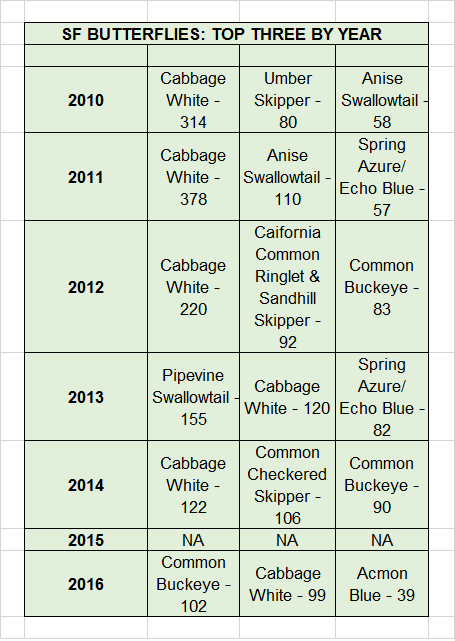top ten butterflies - san francisco 2016