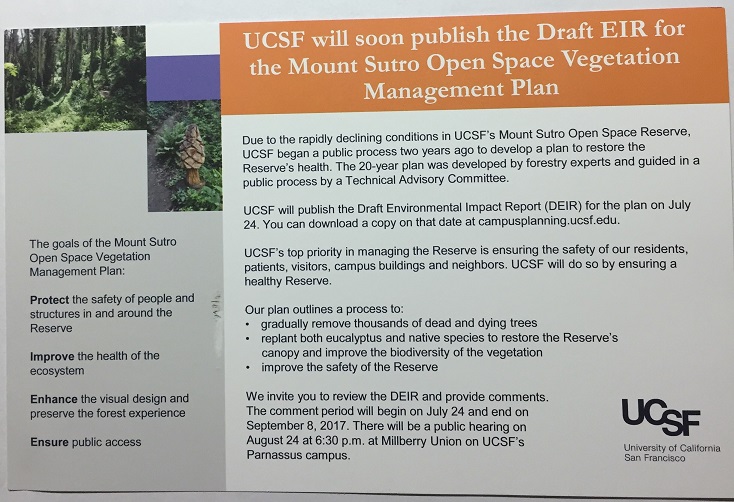 Here it Comes: UCSF announces the Draft EIR for Sutro Forest