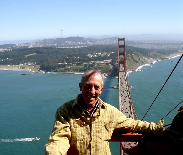 The picture above was taken in 2012, and he permitted us to use it on this website. It shows him on the Golden Gate Bridge, with Sutro Forest in the distance near the Sutro Tower.