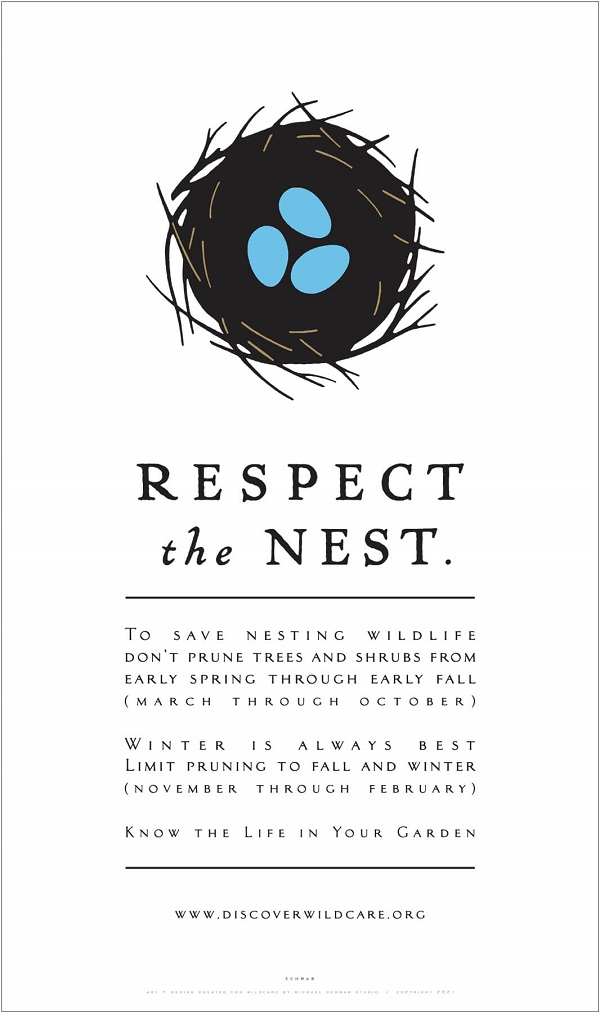 Michael Schwab created the Respect the Nest graphic to help us remind everyone to delay non-emergency tree-trimming and pruning until winter to avoid orphaning baby animals!