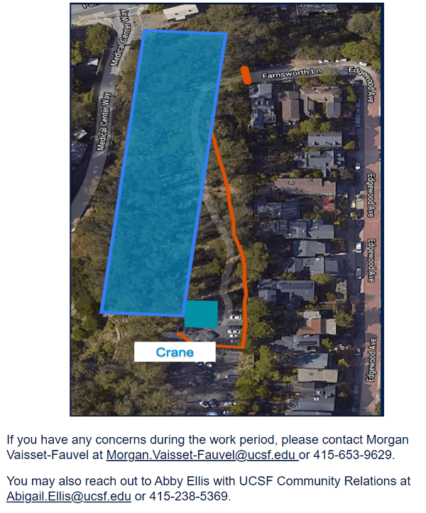 “Can you tell me what’s happening on the north side of the forest? I’ve been watching them cut down a swath from a lunchroom at UCSF the last few days,” said an email to us a day ago.