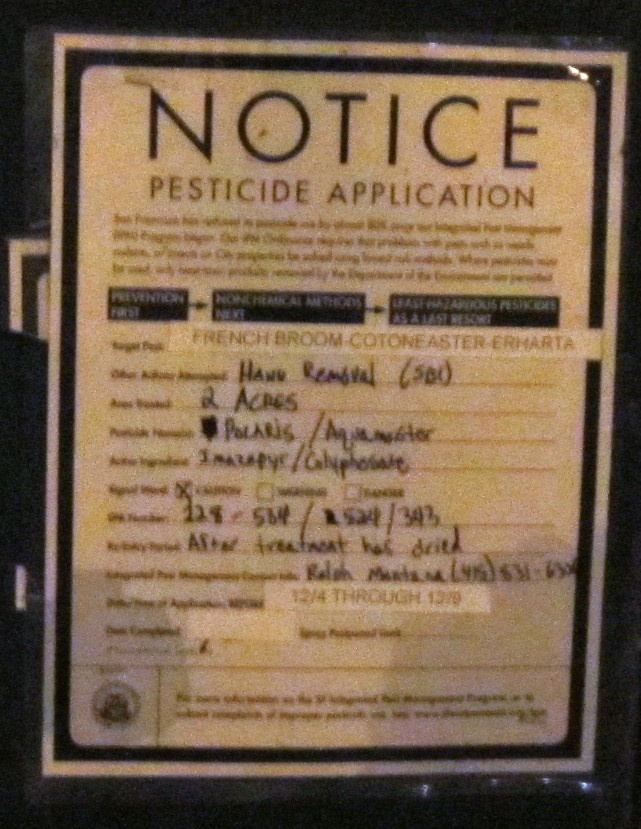 SFRPD applied for an exemption from the California Environmental Quality Act saying that they would not be working in the Natural Areas – but it’s not true. They will be cutting down trees in the Natural Areas. [SF Forest Alliance has an article on their website: NAP Under the Radar.] It’s not the first time they’ve changed their story about what’s happening in Glen Canyon Park; at first, the Rec Center project would involve 10 trees, then the number was suddenly altered to 70 trees, and now it stands at 58.